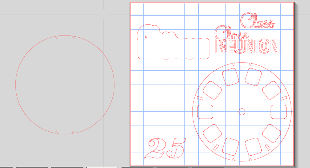 I also copied the View Master card and ungrouped it. I grabbed the outer circle and deleted the rest. This gave me a background piece that I cut in black.
